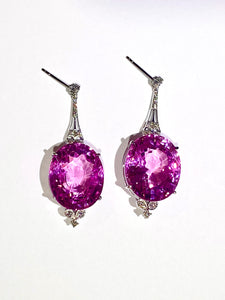 Sterling Silver Turquoise, Pink Tourmaline and Black Diamond Earrings