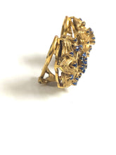 Our 18ct Gold Sapphire Clip On Earrings are a stunning pair that will add an elegant finish to any outfit. Each earring features multiple small round sapphires, encased within an intricate floral design made of 18ct gold.