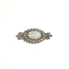 Our 18ct White Gold Solid Opal and Old Cut Diamond Brooch is a gorgeous piece that exudes sophistication. Crafted in 18ct white gold, this brooch features a solid opal stone surrounded by old cut diamonds.