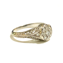 Our 18ct White Gold Diamond Daisy Cluster Ring is a stunning piece of jewelry featuring a cluster of sparkling diamonds set in an elegant white gold band.
