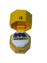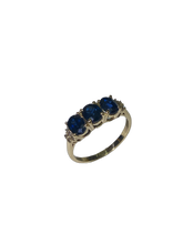 Elevate your jewellery collection with this exquisite 18ct Yellow Gold Sapphire and Diamond Trilogy Ring, a true masterpiece of craftsmanship and luxury. Featuring natural deep-blue sapphires, renowned for their rich colour and brilliance, this ring is the epitome of elegance and sophistication. The central sapphire gemstones are flanked on either side by two dazzling brilliant-cut diamonds, expertly set to enhance their radiance and create a timeless, balanced design.