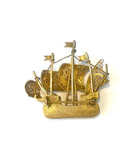 Whether you're attending a formal event or simply want to elevate your everyday style, this ship brooch is the perfect accessory. Its classic design and luxurious materials make it suitable for any occasion.