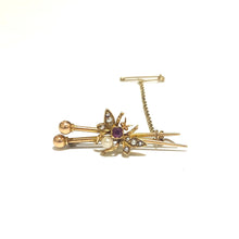 This antique brooch is a perfect accessory for those who appreciate vintage jewellery and want to add a unique finish to their outfits. The combination of gold, pearls, and ruby creates a beautiful contrast, making this brooch a statement piece that will effortlessly elevate any ensemble.