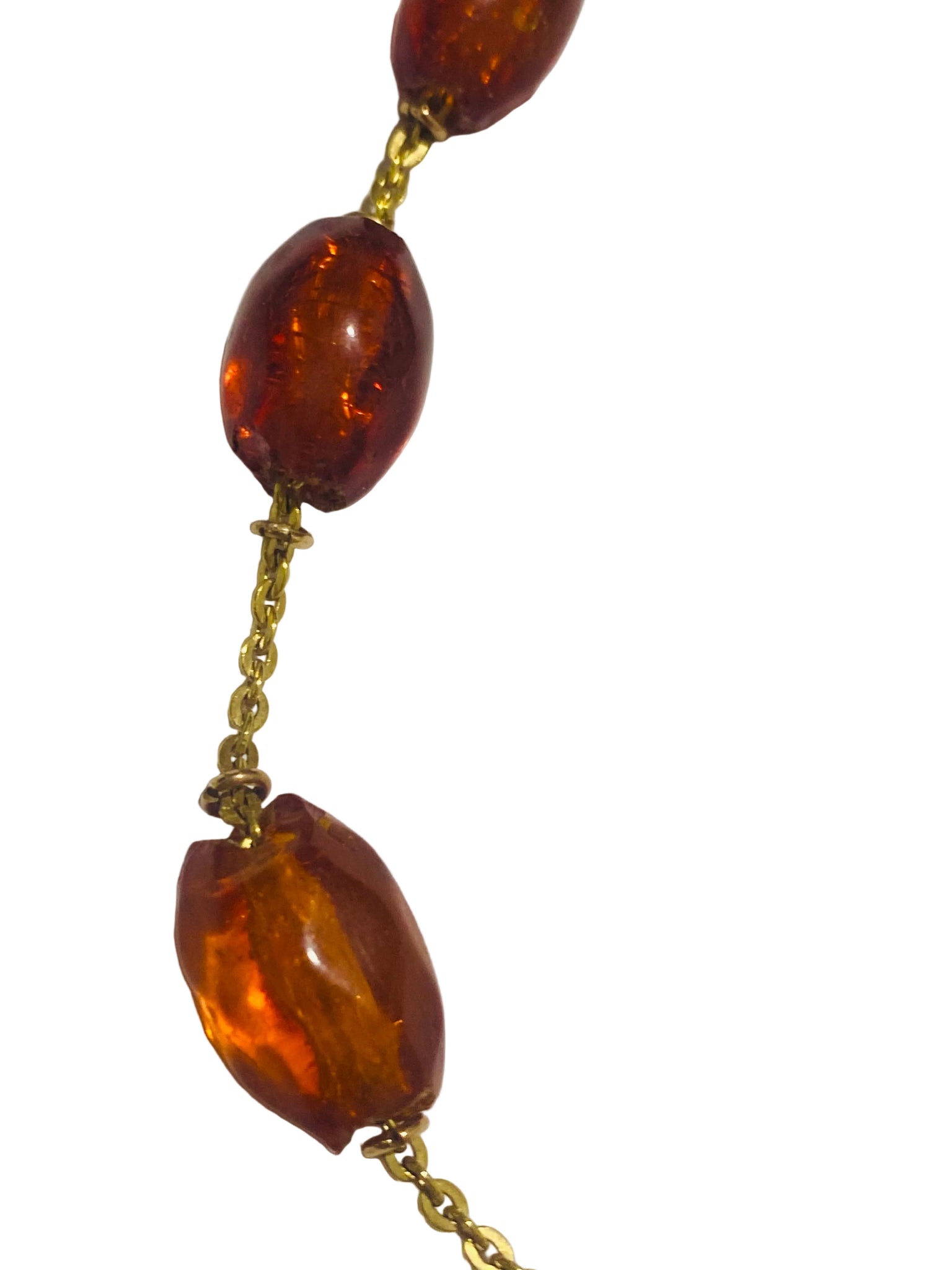 Carefully crafted, this necklace blends antique charm with refined elegance. The smooth, polished amber reveals organic inclusions formed over millions of years, making each piece entirely unique. The 18ct yellow gold setting enhances the natural richness of the amber, offering both durability and understated luxury.