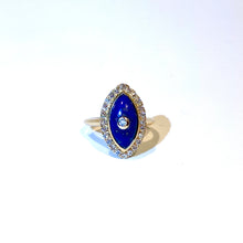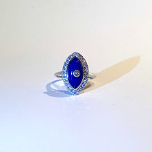 This ring is perfect for anyone who appreciates unique and luxurious jewellery. The deep blue colour of the lapis lazuli is complemented by the shimmering diamonds, creating a striking and eye-catching combination.