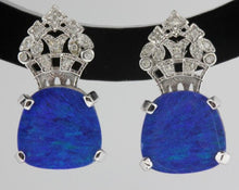 Accompanying the opals are sparkling diamonds, adding a touch of sparkle and luxury to the earrings. The combination of opals and diamonds creates a striking contrast, making these earrings truly eye-catching.
