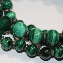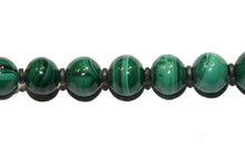 Each malachite bead is individually knotted on silk, ensuring durability and adding a touch of luxury to the necklace. The necklace measures 50cm in length, making it a versatile accessory that can be worn with a variety of necklines.