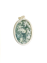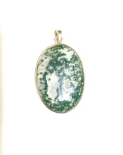 Oval Moss Agate Sterling Silver Pendant is a stunning piece of jewellery featuring a 4cm pendant crafted with genuine moss agate gemstone set in sterling silver.