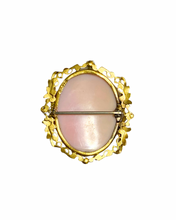 Celebrate timeless beauty with this exquisitely crafted Sterling Silver 18K Gold Plated Conch Shell Cameo. Featuring a hand-carved cameo from genuine conch shell, each piece captures delicate detail and old-world charm. The warm rose hues of the shell contrast beautifully with the rich 18K gold plating, highlighting the romantic silhouette at its center.