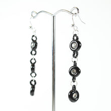 With a width of 10mm and a length of 69mm, these earrings are the perfect size to make a statement without being overwhelming. The black glass beads add a touch of depth and texture, while the cubic zirconia stones provide a beautiful sparkle that catches the light.