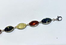 Sterling Silver Multicoloured Amber Bracelet – 185mm
