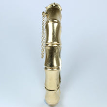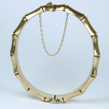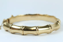 Our Vintage 9ct Yellow Gold Bamboo Hinged Bangle is a stunning piece that exudes elegance. Crafted from 9ct yellow gold, this bangle features twelve intricately carved segments, giving it a unique and eye-catching design.
