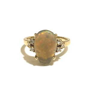 9ct Yellow Gold Pear Shaped 2.20ct Solid Semi Black Opal and Diamond Ring