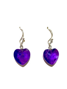 Amethyst Heart Shaped Chequer +board faceted Sterling Silver Drop earrings