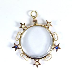 Antique 9ct Yellow Gold Seed Pearl and Sapphire Set Glass Locket