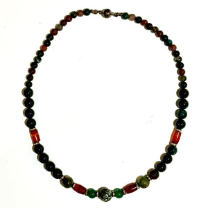 Bloodstone, Carnelian, Moss Agate, and Green Onyx Beaded Necklace with Magnetic Clasp