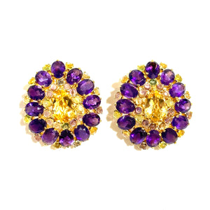 Large Sterling Silver Amethyst and Citrine Multiset Clip-On Earrings