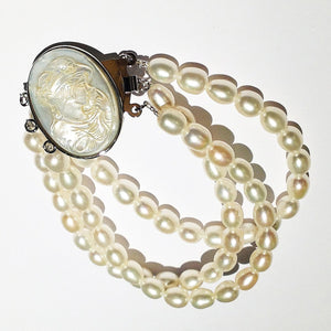 Natural Cultured Pearls with Carved Mother of Pearl Cameo Bracelet