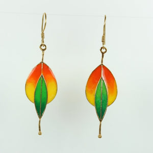 Sterling Silver 14ct Gold Plate Orange and Green Enamel Drop Earrings
