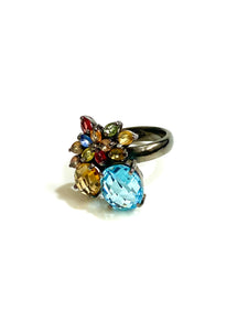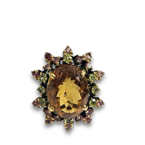 Sterling Silver Black Rhodium Plate Topaz Citrine Garnet Peridot Flower Cluster Ring