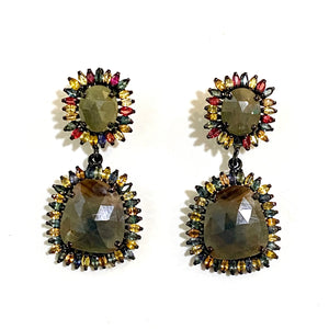 Sterling Silver Black Rhodium Plated Multi-Coloured Sapphire Stud Drop Earrings