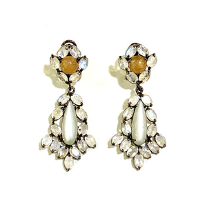 Sterling Silver Black Rhodium Plated Moonstone Stud Drop Earrings