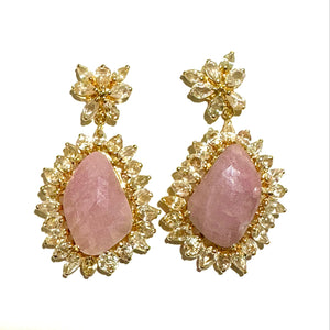 Sterling Silver Gold Plate Rose Cut Ruby and White Topaz Drop Earrings