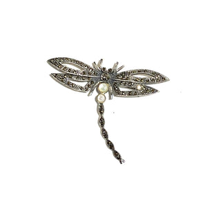 Sterling Silver Marcasite and Mother of Pearl Dragonfly Brooch