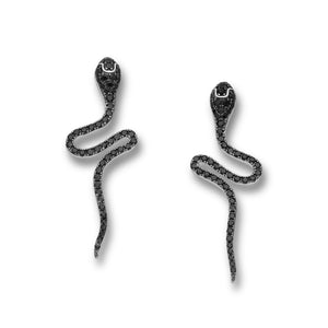 Sterling Silver Snake Push-Back Earrings, Decorated with Black Spinel