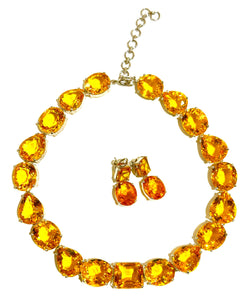 Sterling Silver Yellow Crystal Citrine Coloured Necklace and Earrings