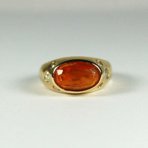 Vintage 18ct Yellow Gold Rare Hessonite Garnet and Diamond Ring