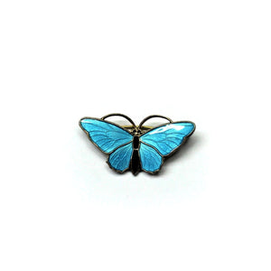 Vintage Sterling Silver Light Blue and Black Enamel Butterfly Brooch