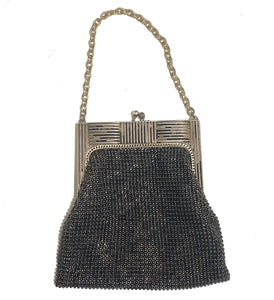 Vintage Whiting & Davis Art Deco Sterling Silver and Enamel Mesh Evening Bag