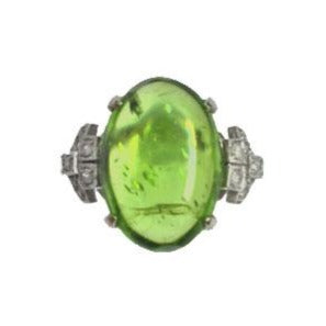 9ct White Gold 10.12ct Cabochon Peridot and Diamond Cocktail Ring