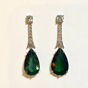 9ct White Gold Green Tourmaline and Diamond Teardrop Earrings