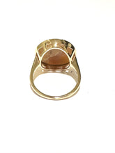 The detailed design of the conch shell cameo showcases intricate carvings and a beautiful colour palette, making it a true work of art. The 9ct gold band adds a touch of luxury and enhances the overall beauty of the ring.