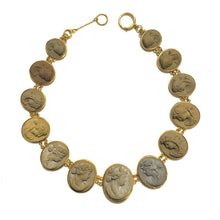 A beautiful Antique Italian Sterling Silver Gold Plate Carved Lava Stone Necklace.
