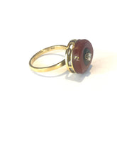 This ring is perfect for anyone who loves to make a statement with their jewellery. The 14ct gold setting adds a luxurious finish, while the carnelian and onyx stones bring a pop of colour and visual interest. The addition of the diamond accents adds sparkle and elegance.
