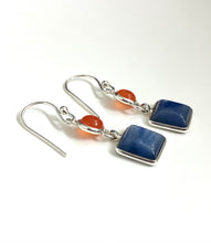These earrings are perfect for those who appreciate unique and eye-catching accessories. The combination of carnelian and kyanite creates a beautiful contrast of colours, with the warm orange tones of carnelian complementing the cool blue hues of kyanite.