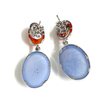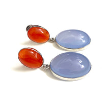 The chalcedony gemstones have a beautiful blue hue that is complemented by the warm orange tones of the carnelian gemstones. The combination of colours creates a striking contrast that will catch the light and draw attention to your ears.