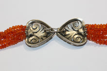This necklace dates back to the 1940s, making it a unique and timeless piece that is sure to make a statement. The faceted Carnelian beads catch the light beautifully, adding a subtle sparkle to any outfit.