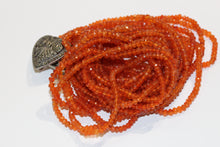 Our Natural Faceted Carnelian Necklace is a stunning piece of jewellery that features lovely bright orange faceted beads in five strands. Each bead measures 2mm wide, creating a delicate and elegant look.