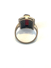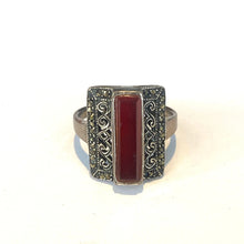 Our Sterling Silver Carnelian and Marcasite Square Ring is a gorgeous Art-Deco inspired accessory that is sure to catch the eye. This ring is made from high-quality sterling silver, ensuring durability and longevity.