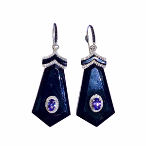 Sterling Silver Tanzanite, Diamond and Black Onyx Drop Earrings