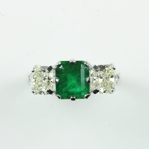 18ct White Gold 1.38ct Emerald and Diamond Trilogy Ring