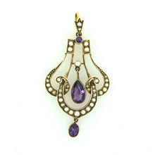 Our Edwardian Amethyst Seed Pearl Pendant is a gorgeous piece of jewellery that exudes elegance and simplicity. This antique pendant features a beautiful amethyst stone surrounded by delicate seed pearls, all set in fine gold.