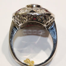 Our 9ct White Gold Cushion Cut Ruby and Diamond Cocktail Ring is a showstopping piece of jewellery that combines elegance and sophistication. This ring features a bezel set Cushion Cut Ruby at its centre, surrounded by a Deco Style halo of Rubies and Diamonds.