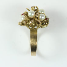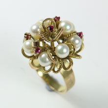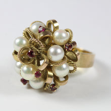 14ct Yellow Gold Freshwater Pearl and Ruby Ring