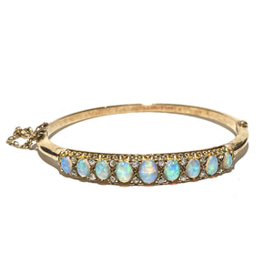Antique Yellow Gold Solid Opal and Old Cut Diamond Bangle