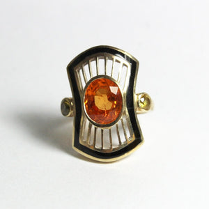 9ct Yellow Gold Spessartite Garnet, Yellow Diamond and Black Onyx Cocktail Ring